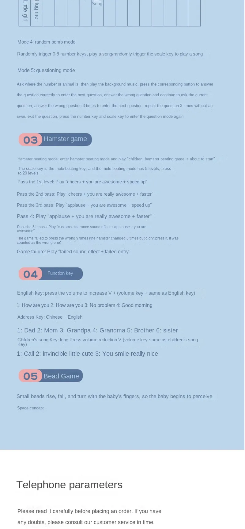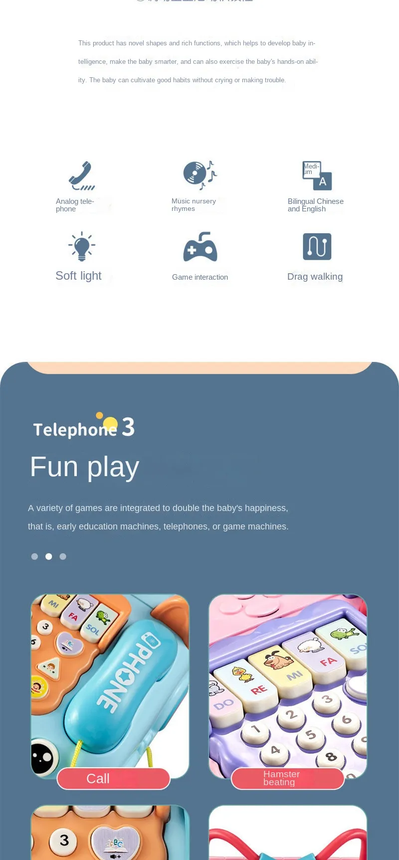 – This product is novel in shape and rich in functions, which helps to develop the baby’s intelligence, makes the baby smarter, and can also exercise the baby’s hands-on ability.
