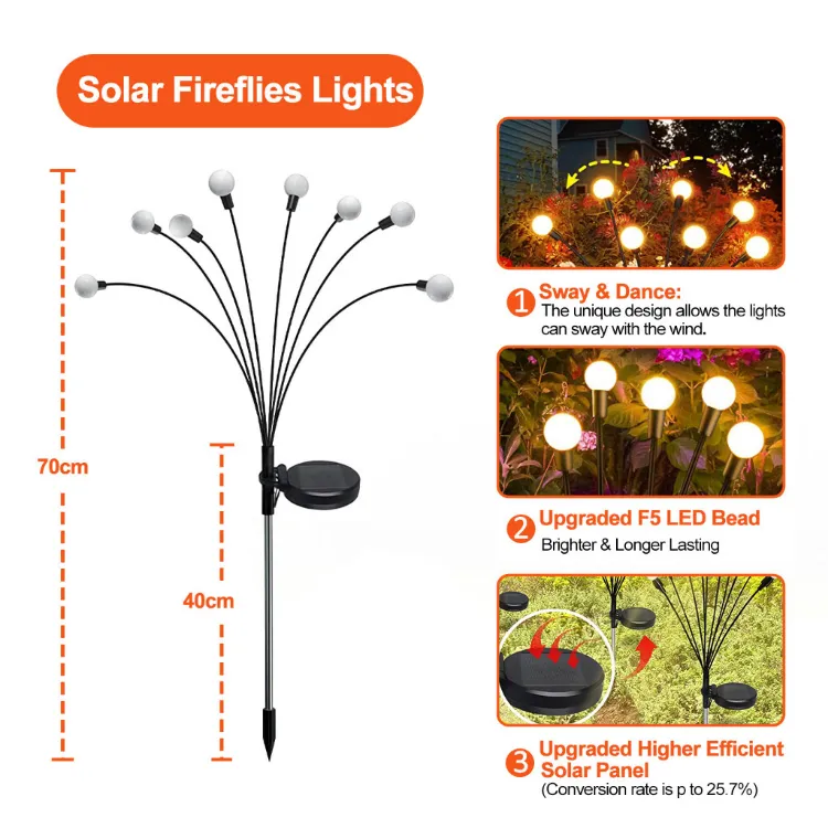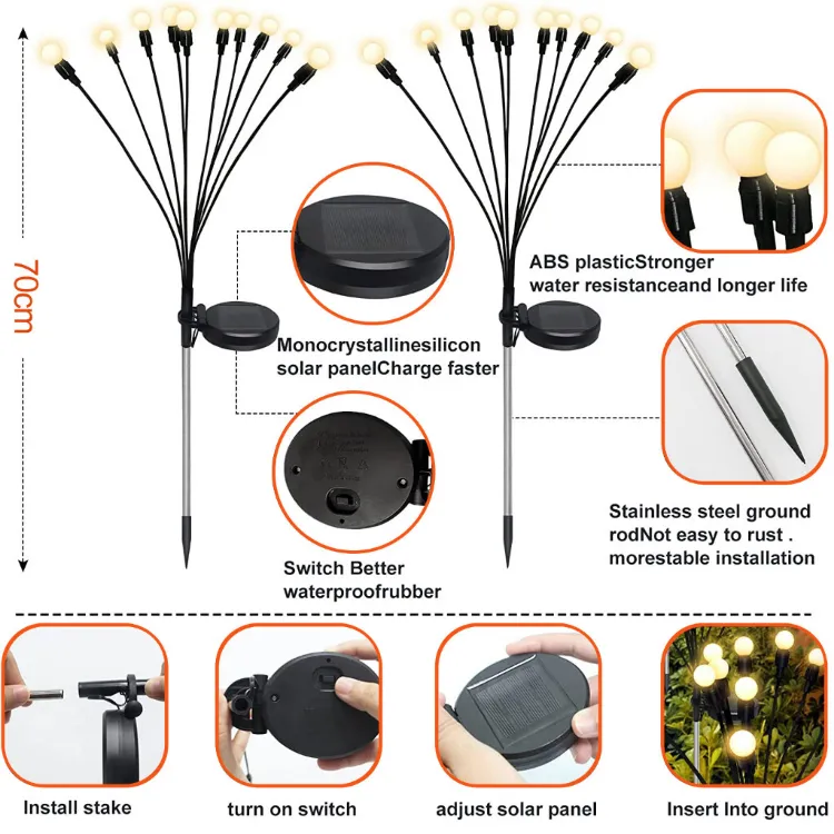 【Upgraded Sway Effect & Dance by Wind, As If Firefly Dancing in Your Yard】: With IP65 waterproof performance, can withstand any weather when used outdoors. These garden solar firefly lights are a great choice for Home Decor, Landscape, Garden, Yard, Driveway, Pathway, Walkway, Holiday Decorations, and so on.