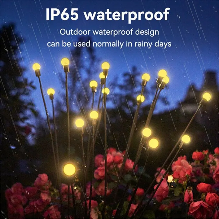 ⦿ With an IP65 waterproof rating, you don’t have to worry about the solar firefly light getting wet in rainy days, keeping your home and garden sparkling every night. Firefly lights add sparkle to your yard.